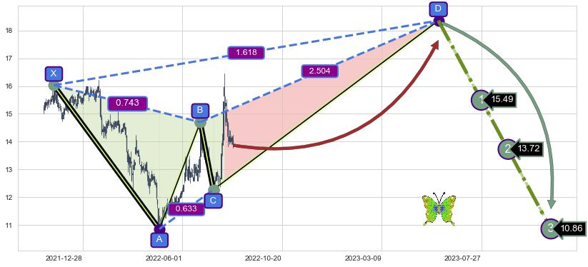 ➢ 未完成【蝴蝶】形态起点X: 2021-11-17, 已到达C点: 2022-07-15, 预测最终D点: 2023-05-29, 共378交易日