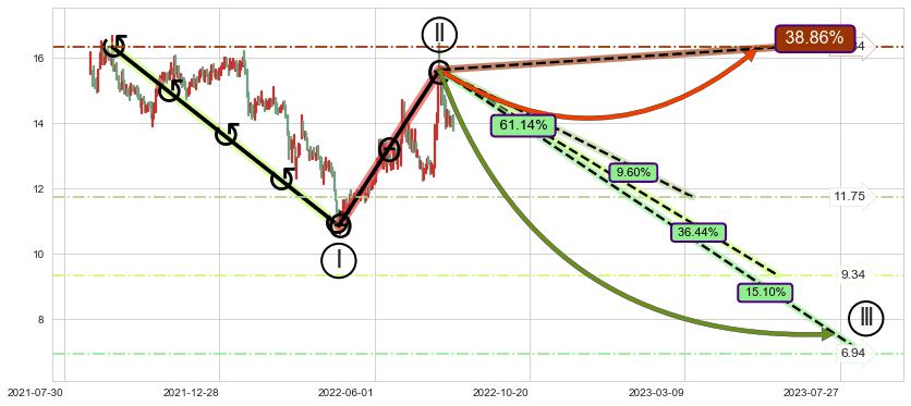 ➣ 循环浪继续向下【平均值】位置(2023-06-01, 9.34),匹配聚类样本比例59.60%, 可能性概率36.44%