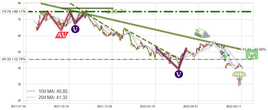 ➢ 【仅预测突破】最后价格:40.18与预测突破价格:42.48→【空间较大】后续最小【反转】第一目标价格→(2022-08-29: 45.34 )