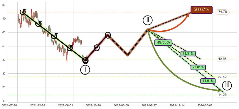 ➣ 大趋势循环浪继续向下概率49.33%