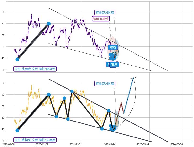 ➢ 头肩底属【短级别信号事件】降楔型属【长级别信号事件】长短周期组合信号事件, 短长事件长度比6.07%