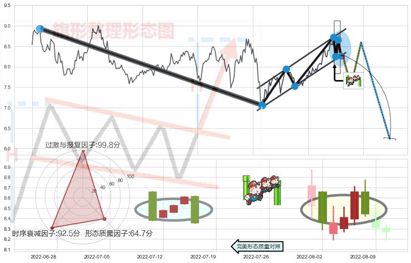 ➢ 🕰 价格走势在2022-08-02至2022-08-08期间形成下降三部曲(降势三鹤),残存影响值:-6.60