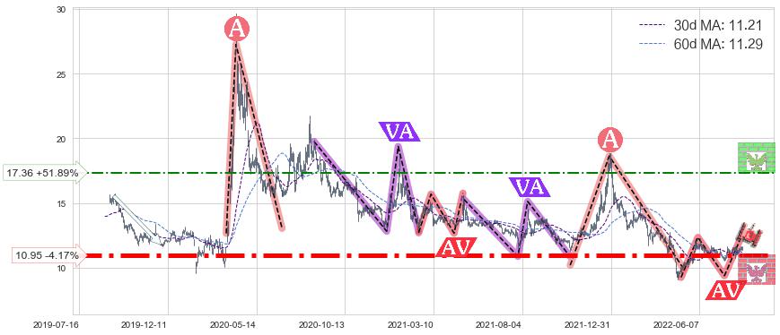 ♘ 阻力价格位17.36,可信任强度50.03%,距离最后交易2022-08-12形成的收盘价格11.43相差 +51.89%