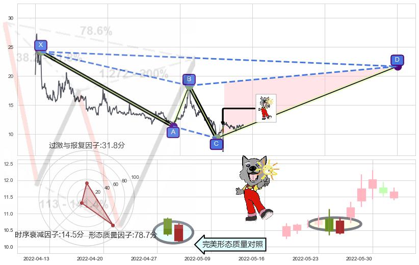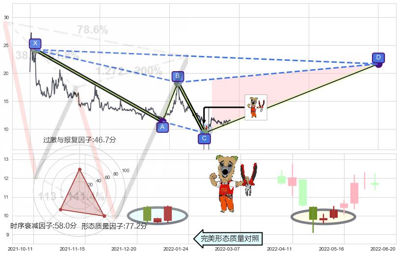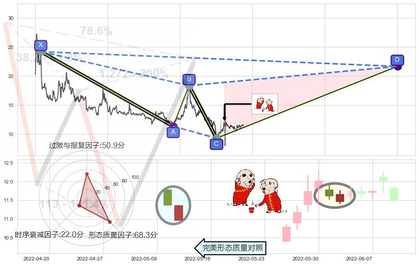 ➢ 曙光初现形态 🔜 谐波赛福下沉击穿c上涨拐点 综合量化分数:56.36 【偏多】