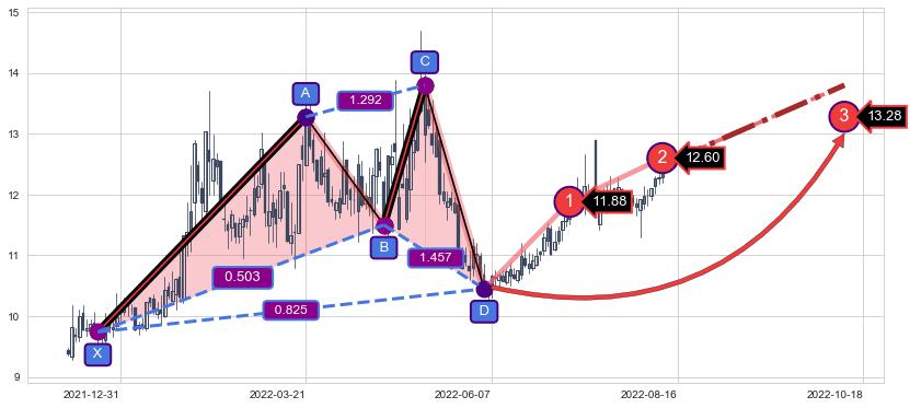 ➢ AI预测: 假定反转继续,第❸价格目标位置(2022-10-18, 13.28)
