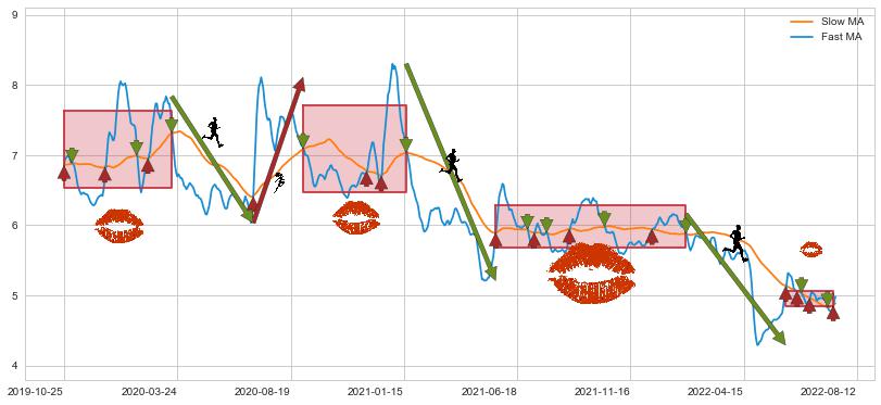 2021-05-21至2022-01-25 慢线与快线多次接触,存在上下穿越,有缠绕