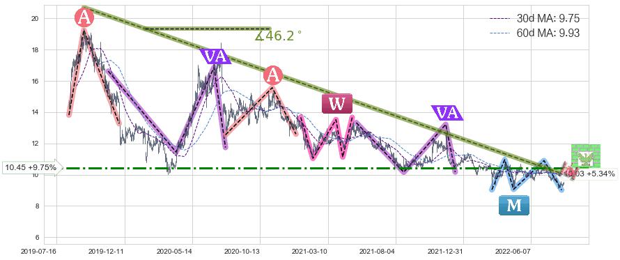 ➣ 【仅预测突破】最后价格:9.52与预测突破价格:10.67→【空间较大】后续最小【反转】第一目标价格→(2022-11-07: 12.11 )