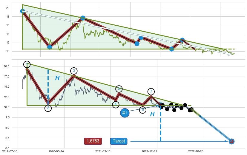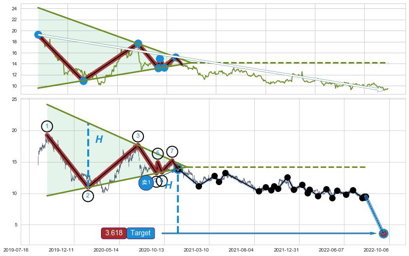 ➣ D点拟合预测价格14.93,距离最后交易收盘价格9.52相差 +56.87%