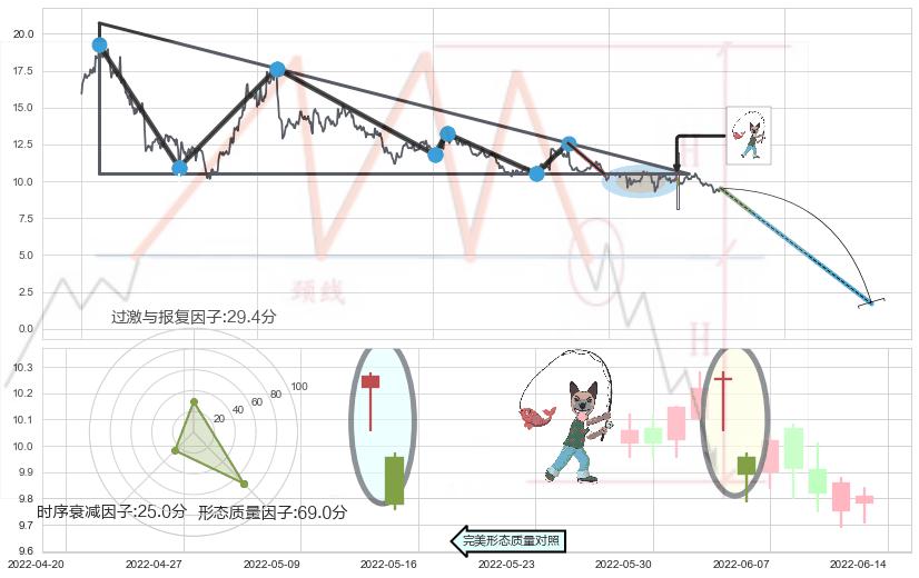 ➢ 【多方力量耗尽,空方打破攻守平衡点】下降三角形中继整理, 已在2022-01-24突破【支撑】颈线 10.51 →演变成下降通道