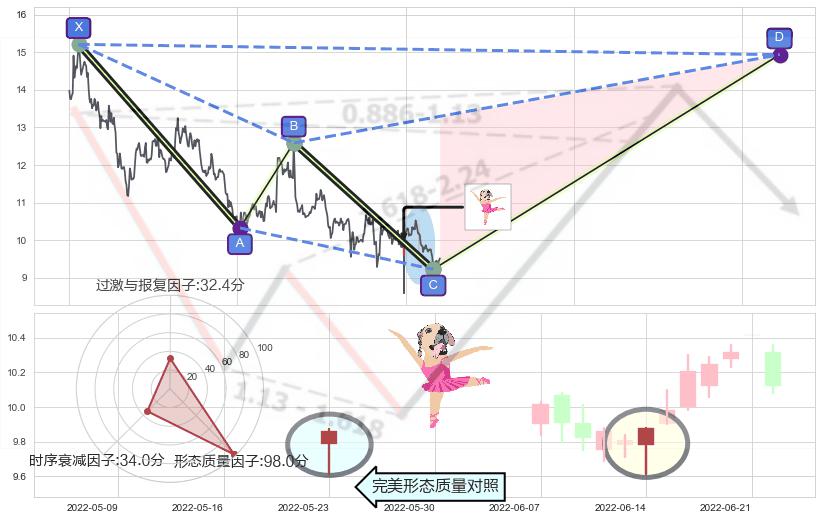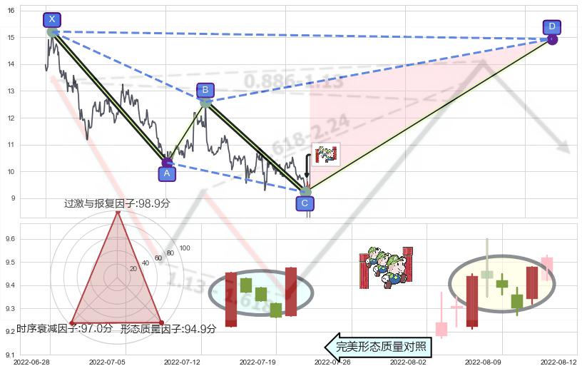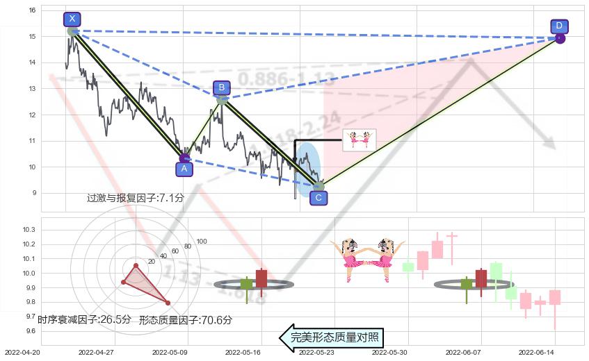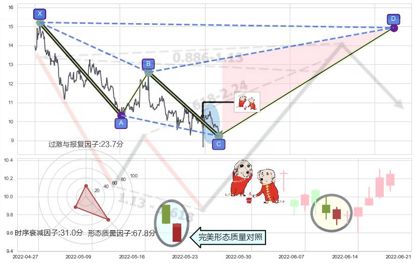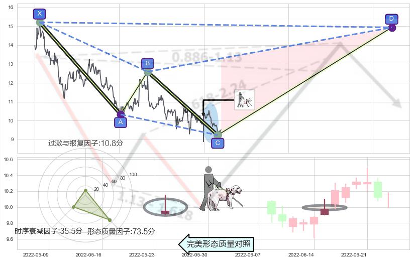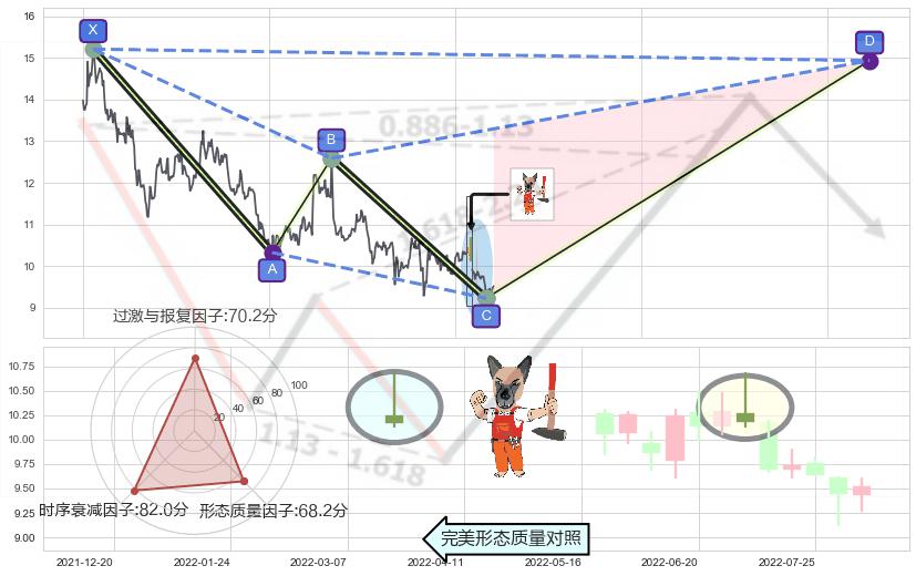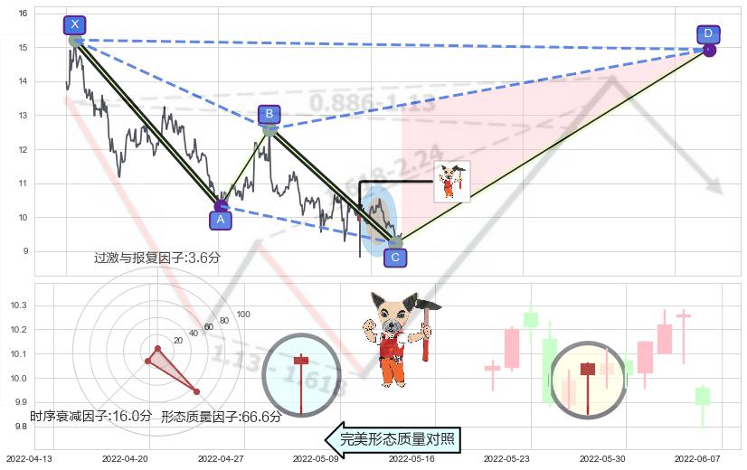 ➢ 锤头线(锤子线) 🔜 谐波鲨鱼下沉击穿c上涨拐点 综合量化分数:55.68 【偏多】