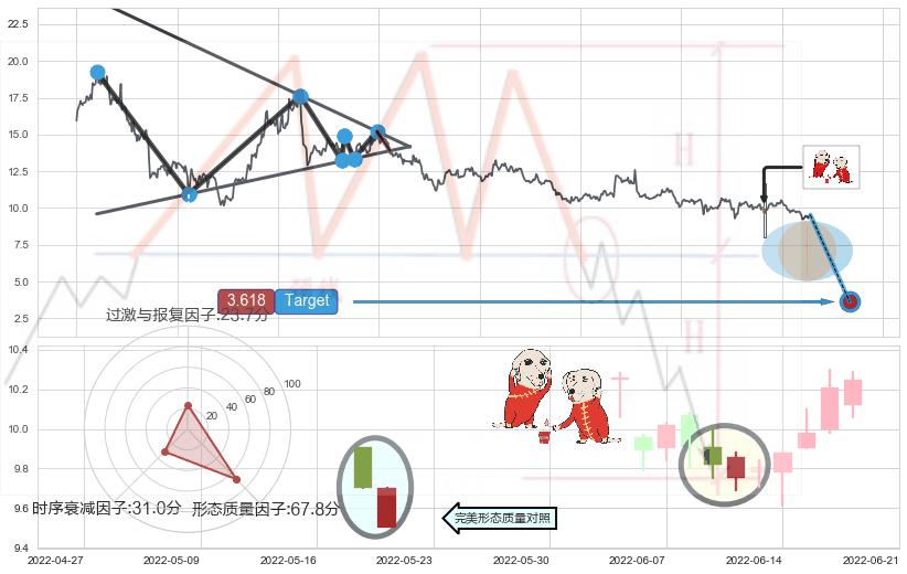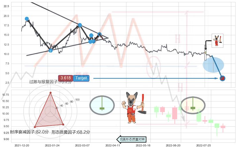 ➣ 【已确认突破】最后价格:9.52与最小【整理】第一目标价格→(2022-10-06: 3.618 )相较: 下跌空间【中等】