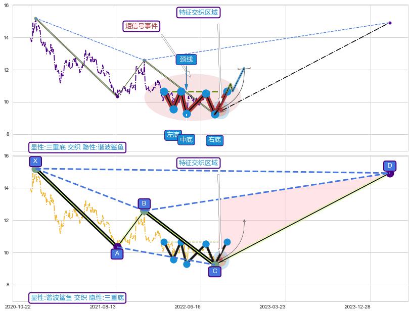 ➢ 三重底属【短级别信号事件】谐波鲨鱼属【长级别信号事件】长短周期组合信号事件, 短长事件长度比33.18%