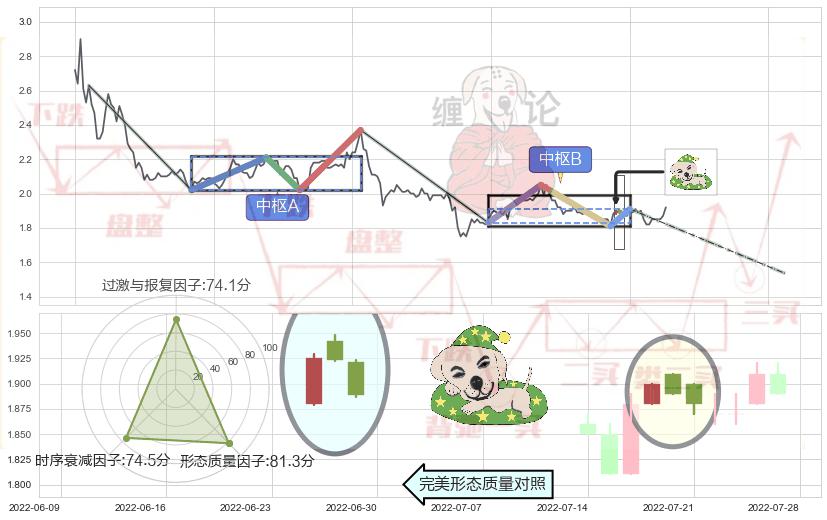 ➣ 【中枢B】:2022-05-13-2022-07-26,中枢由4笔构成,共52交易日, ZG=1.9100, ZD=1.8300