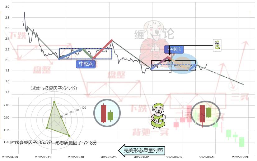 ➢ 下跌身怀六甲 🔜 缠论中枢点破位中枢B支撑下拉 综合量化分数:47.13 【中性】