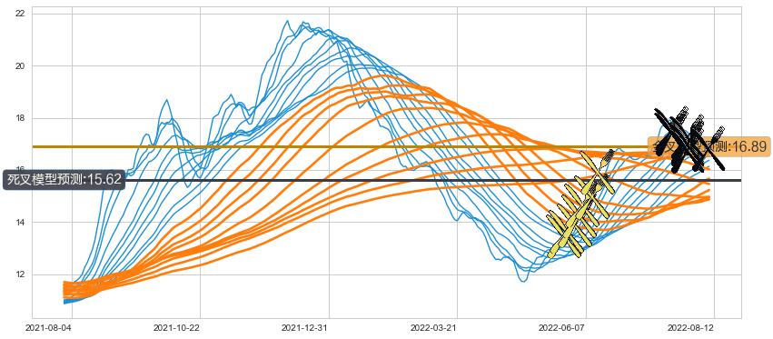 ➣ 13小时均线于(2022-07-22: 17.36)形成【死叉】基于【死叉历史模型】预测死叉后最低波谷价格: 16.38, 死叉后最低价格15.90,已经下跌超出预测最低波谷价格, 预期反弹