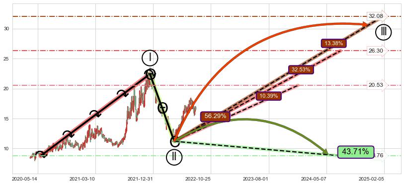 ♘ 支撑价格位10.64,可信任强度95.27%,距离最后交易2022-08-12形成的收盘价格16.50相差 -35.49%