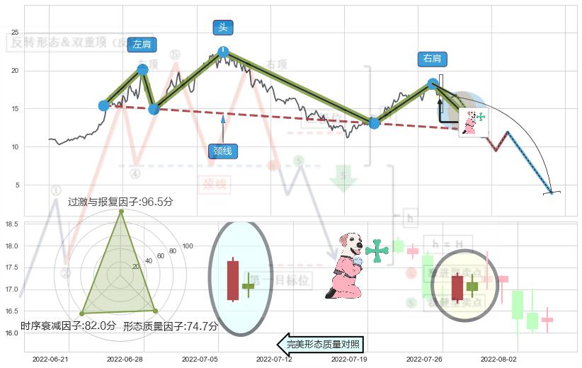 ➢ 🕰 价格走势在2022-08-01至2022-08-02期间形成吊颈线(上吊线),残存影响值:-4.22