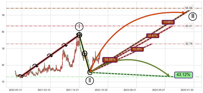 ♘ 支撑价格位16.69,可信任强度99.00%,距离最后交易2022-08-12形成的收盘价格27.57相差 -39.46%