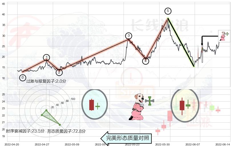 ➢ 🕰 价格走势在2022-06-14至2022-06-14期间形成锤头线(锤子线),残存影响值:2.37
