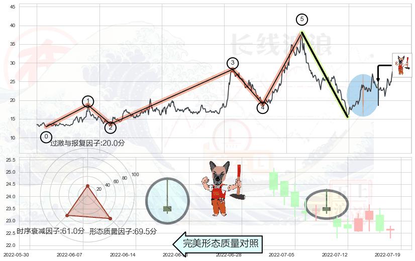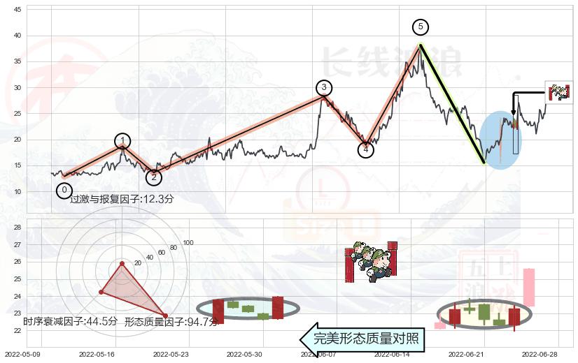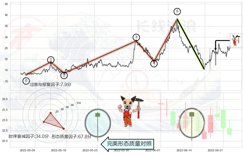 ➢ 🕰 价格走势在2022-06-20至2022-07-04期间形成黄昏之星(夜星),残存影响值:-7.34