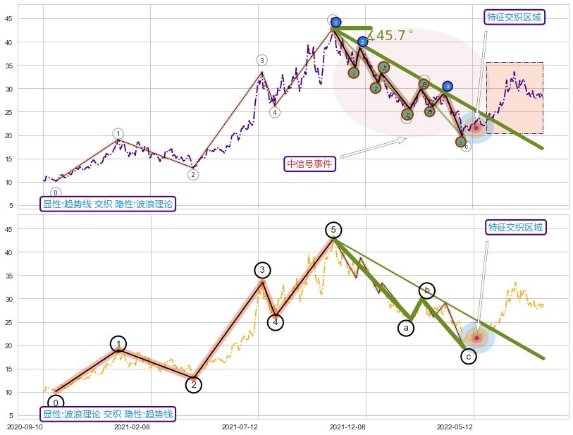 ➢ 趋势线属【中级别信号事件】波浪理论属【长级别信号事件】中长周期组合信号事件,中长事件长度比38.42%