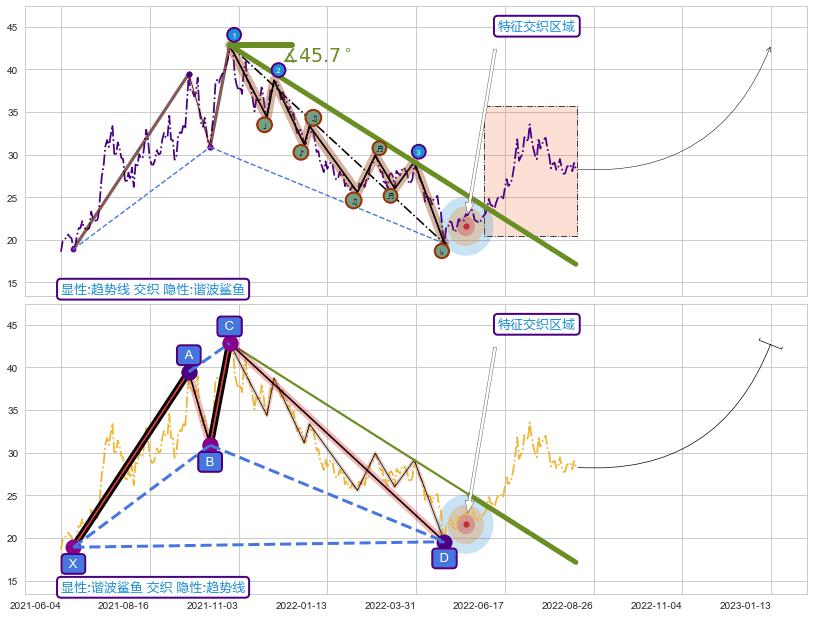 ➢ 已完成【鲨鱼】形态起点X: 2021-06-16, 终点D: 2022-04-26, 共210交易日