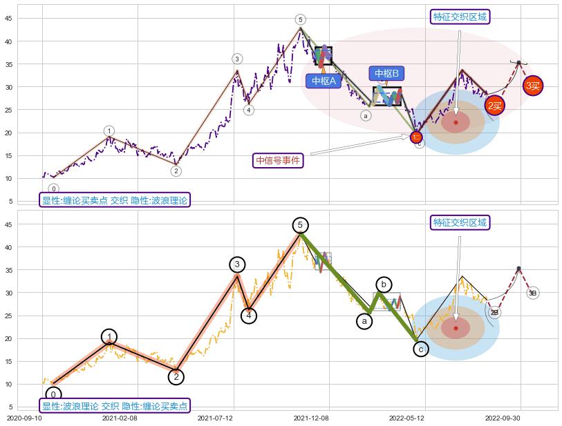 ➢ 波浪理论与缠论买卖点信号事件周期长度级别相同,同周期信号事件