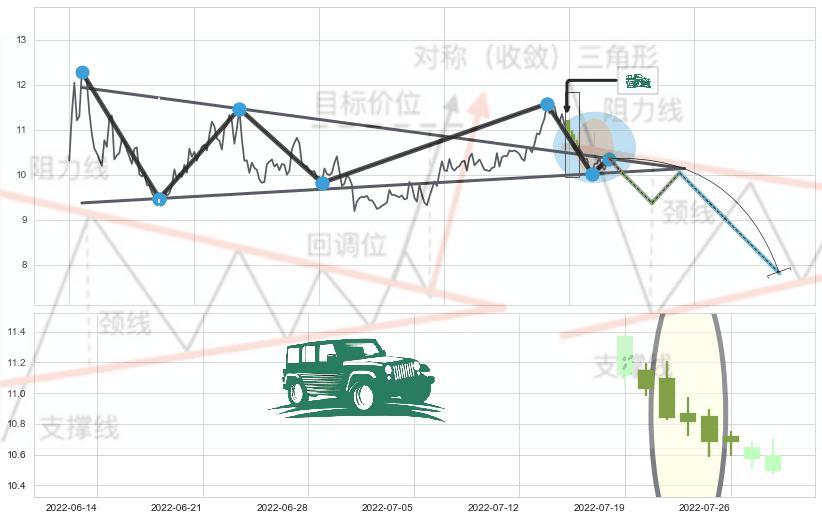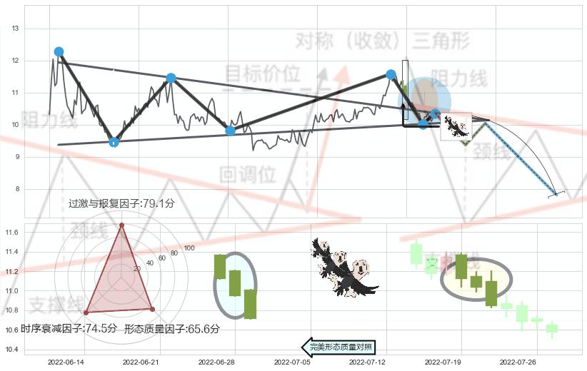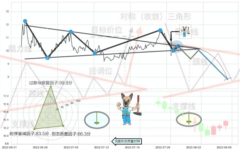 ➣ 【未确认突破,预测即将形成突破】下降【对称】三角形整理起点:2021-09-28, 预测突破点:2022-08-19,形态共217交易日