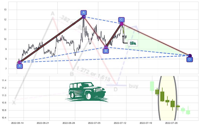 ➣ 未完成【伽利】形态起点X: 2020-06-15, 已到达C点: 2022-07-08, 预测最终D点: 2023-10-23, 共831交易日