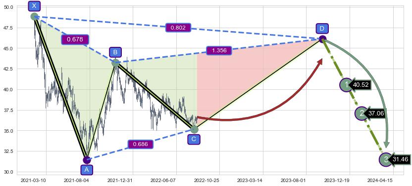 ➣ 未完成【伽利】形态起点X: 2021-01-25, 已到达C点: 2022-08-03, 预测最终D点: 2023-09-21, 共665交易日