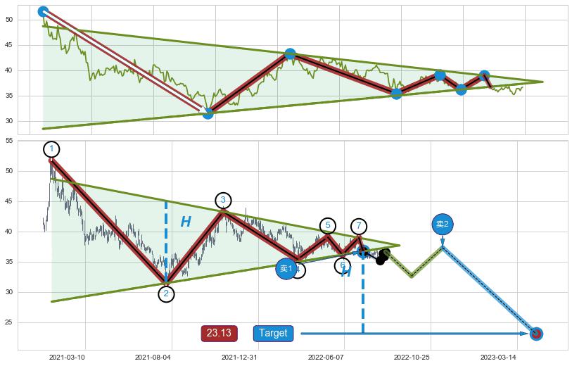➣ 【已确认突破】最后价格:36.63与最小【整理】第一目标价格→(2023-04-13: 23.13 )相较: 下跌空间【较大】