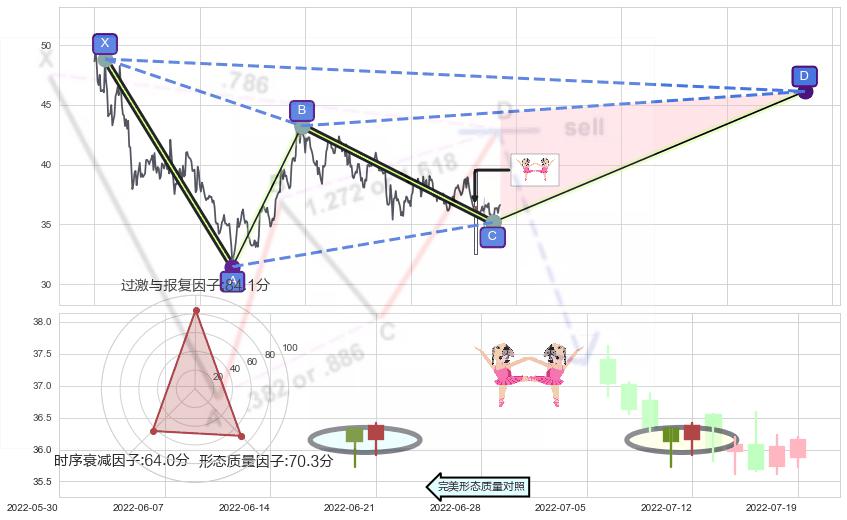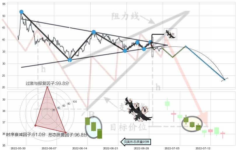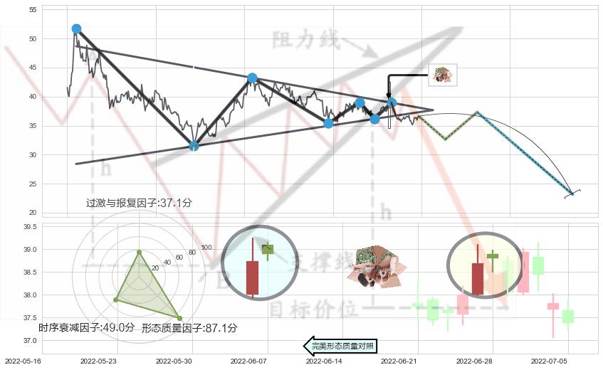 ➢ 【卖1】: 激进型 卖点→(2022-07-07: 36.71 )形成突破下降【对称】三角形整理【整理】形态