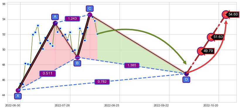 ➣ 未完成【赛福】形态起点X: 2022-06-29, 已到达C点: 2022-08-09, 预测最终D点: 2022-10-03, 共69交易日