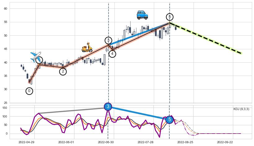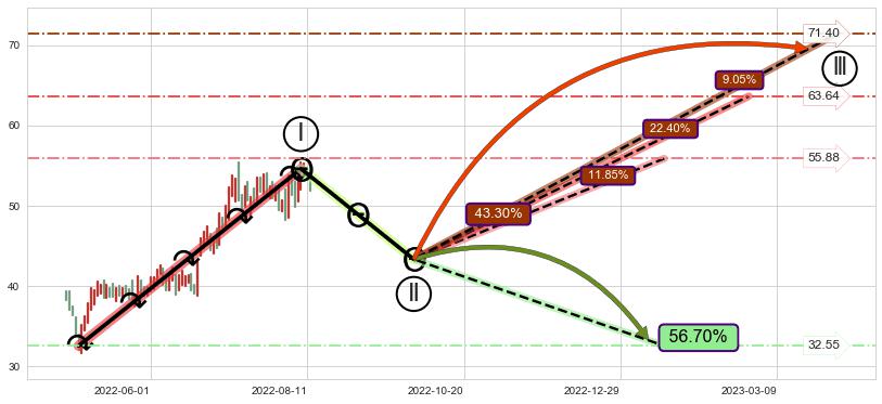 ➣ AI预测: 假定反转启动后, 第❸目标位置(2022-10-25, 54.60)