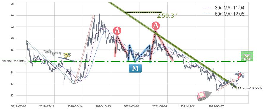♘ 阻力价格位15.95,可信任强度91.56%,距离最后交易2022-08-12形成的收盘价格12.52相差 +27.38%