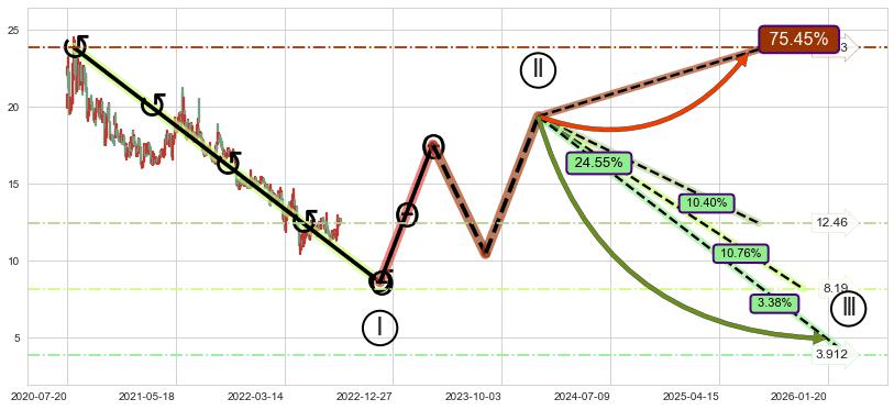 ➣ D点拟合预测价格14.90,距离最后交易收盘价格12.52相差 +19.05%