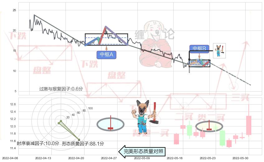 ➣ 看跌(高位倒锤头)流星线 + 缠论中枢点破位中枢B支撑下拉信号叠加后【目标达成率】中等,【看空】信号叠加【存续影响中等】