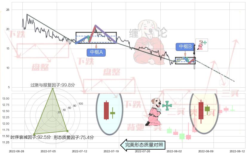 ➣ 下跌孕十字星 + 缠论中枢点破位中枢B支撑下拉信号叠加后【信号初始稳固度】偏低,【看空】信号叠加【可信度影响降权】