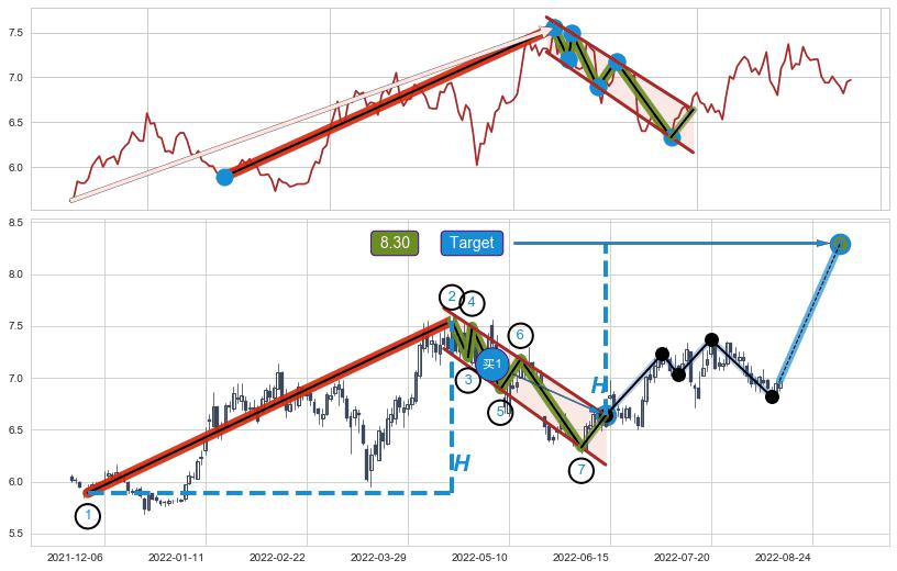 ➣ AI预测: 假定反转启动后, 第❶目标位置(2023-03-22, 6.56)