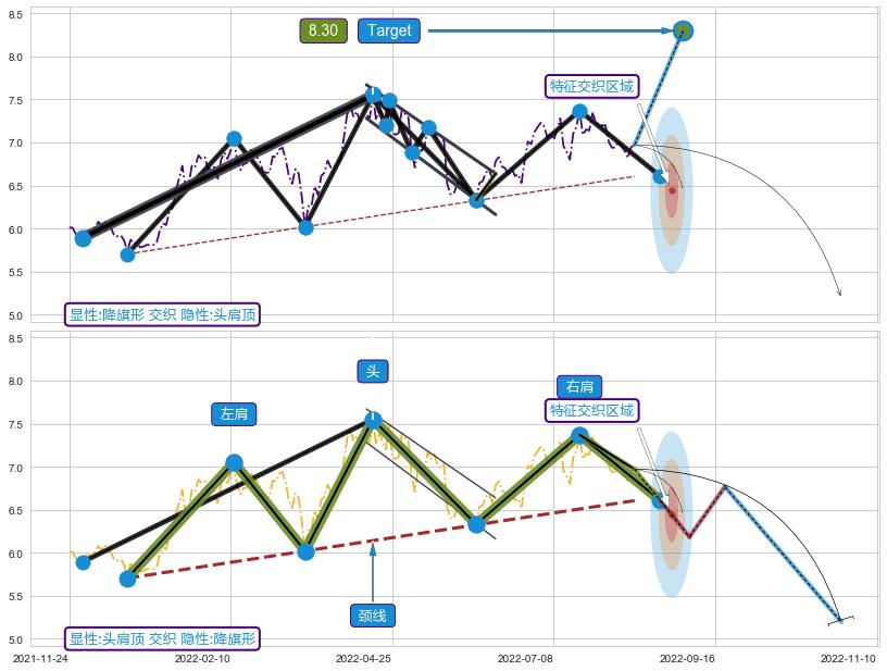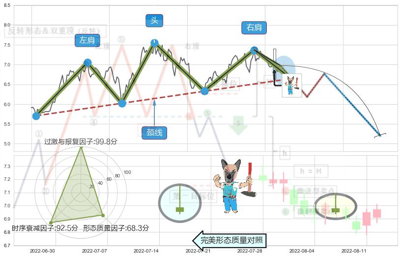 ➣ 【未确认突破,预测即将形成突破】头肩顶起点:2021-12-20, 预测突破点:2022-08-24,形态共166交易日