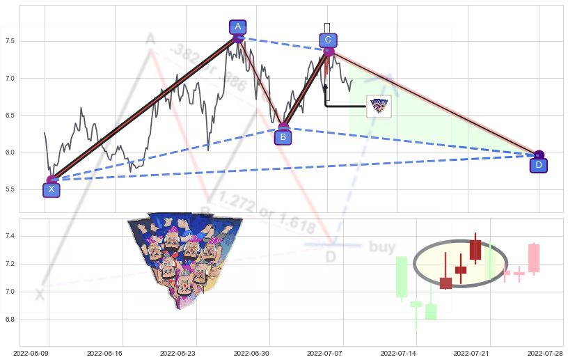 ➣ 未完成【伽利】形态起点X: 2021-09-24, 已到达C点: 2022-07-20, 预测最终D点: 2023-02-14, 共344交易日