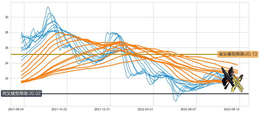 ➣ 21小时均线于(2022-07-26: 22.49)形成【死叉】基于【死叉历史模型】预测死叉后最低波谷价格: 20.84, 死叉后最低价格20.37,已经下跌超出预测最低波谷价格, 预期反弹