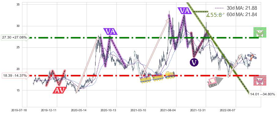 ♘ 阻力价格位27.30,可信任强度85.78%,距离最后交易2022-08-12形成的收盘价格21.48相差 +27.08%