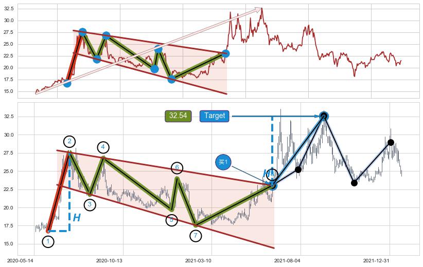 ➣ 最小中继整理涨幅→𝐇: 10.82 (𝐇旗杆的长度:旗杆起点→顶点)