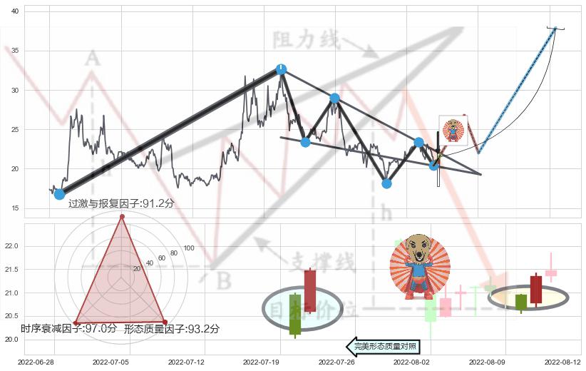 ♘ 支撑价格位18.39,可信任强度93.89%,距离最后交易2022-08-12形成的收盘价格21.48相差 -14.37%