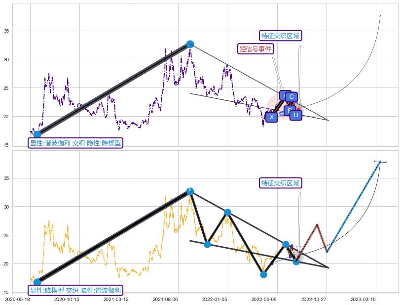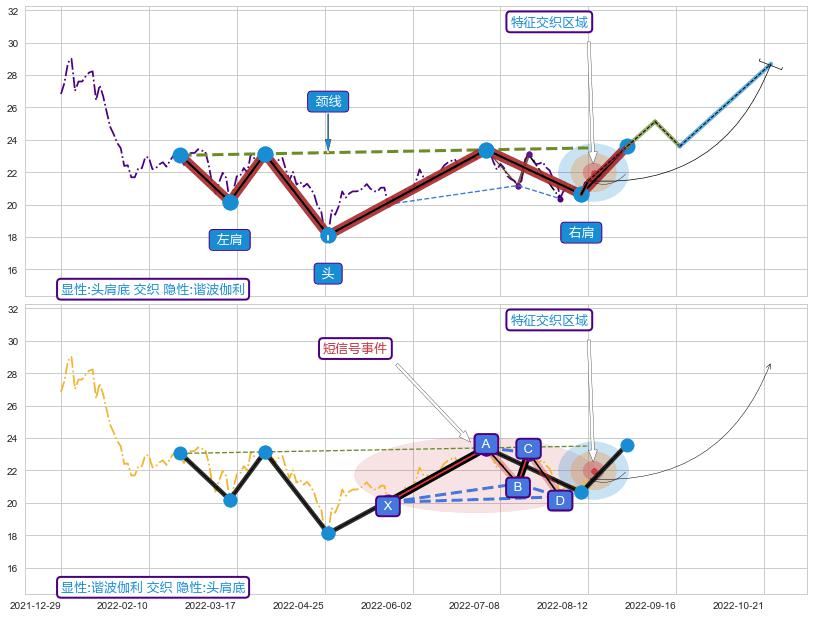 ➢ 谐波伽利属【短级别信号事件】头肩底属【长级别信号事件】长短周期组合信号事件, 短长事件长度比33.78%
