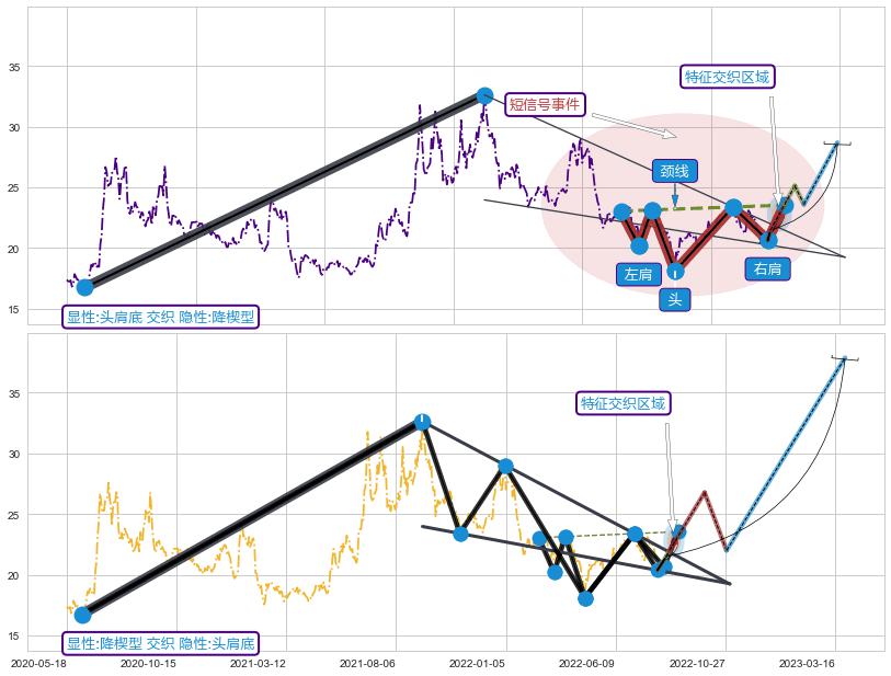 ➢ 头肩底属【短级别信号事件】降楔型属【长级别信号事件】长短周期组合信号事件, 短长事件长度比27.77%