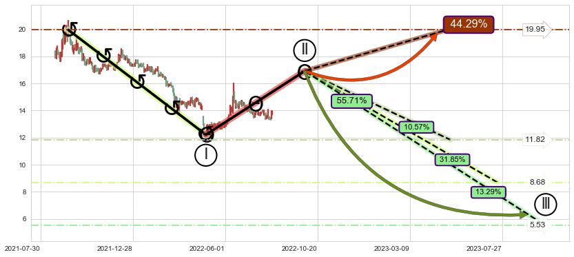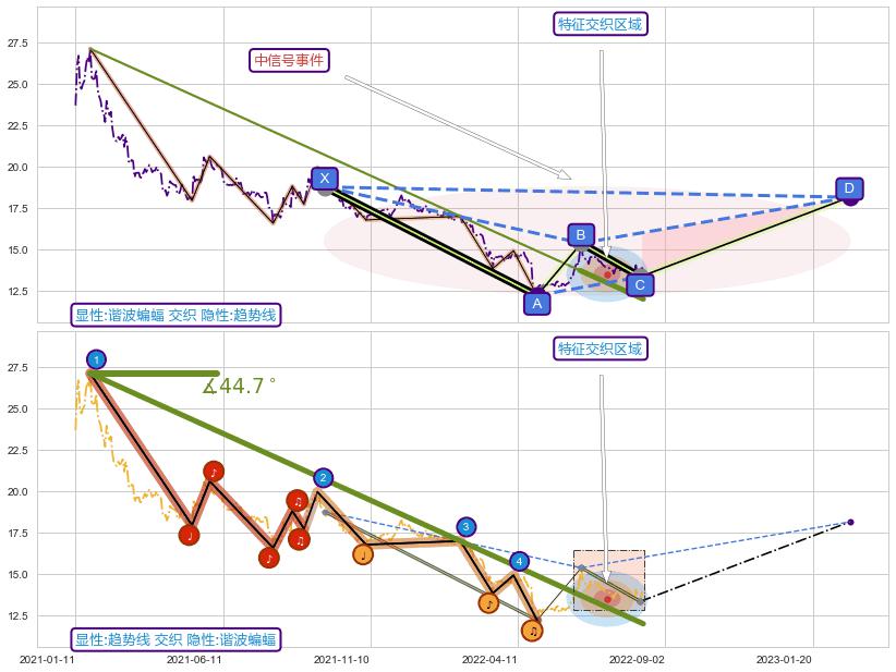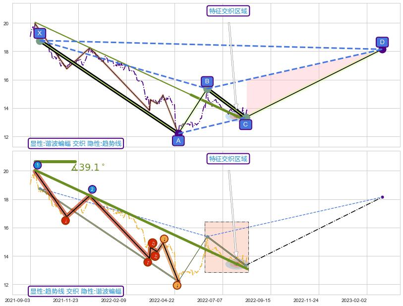 ➣ D点拟合预测价格18.14,距离最后交易收盘价格13.84相差 +31.08%