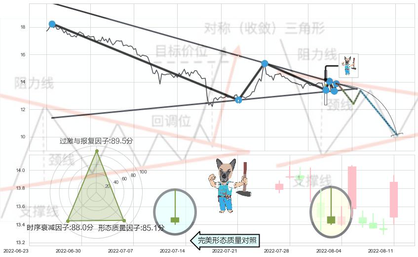 ➣ 【未确认突破,预测即将形成突破】下降【对称】三角形整理起点:2021-12-09, 预测突破点:2022-08-11,形态共164交易日
