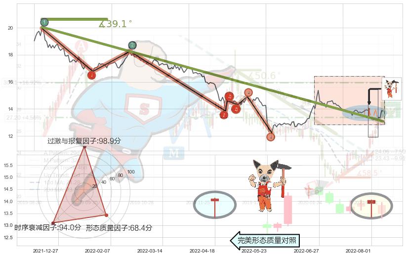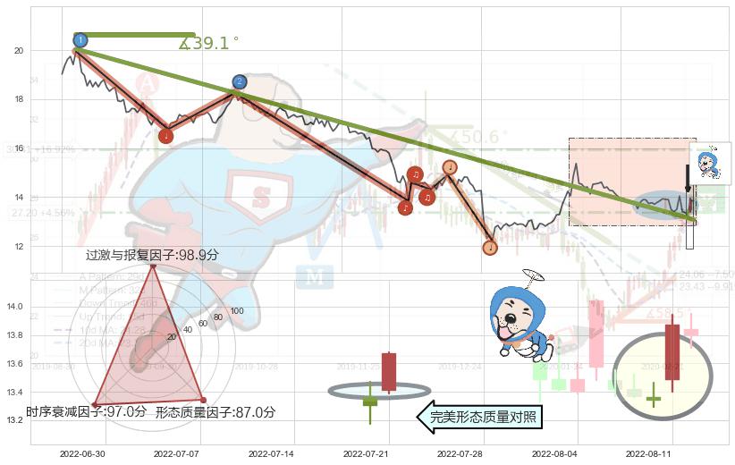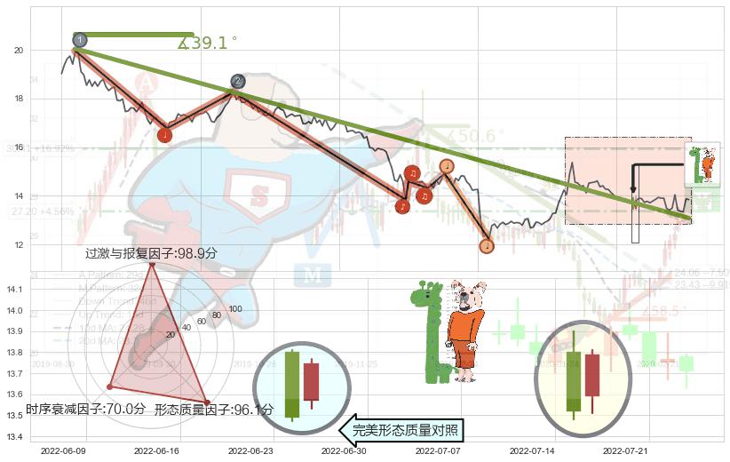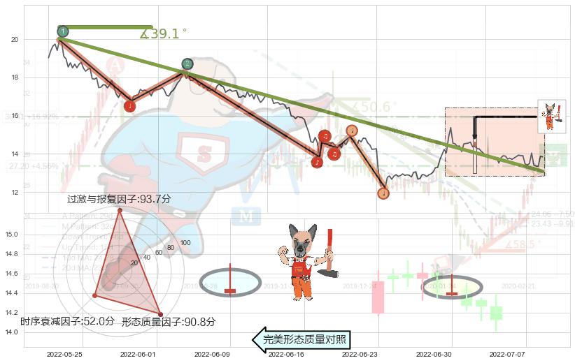 ➢ 2021-01-25-2022-06-14下跌趋势存在反转上涨[机会],其原下跌趋势的阻力位(12.00)已被突破[强支撑信号],原下跌趋势角度: 44.7˚